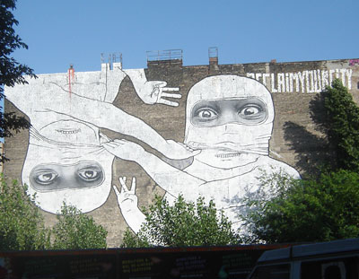 מה קורה כשאוספים יחד עשרות אמני רחוב בברלין בימים אלו מוצגות בברלין שתי תערוכות גדולות של אמנות רחוב; Backjumps בגלריית הביט'ניין בקרוויצברג, ו-Planet-Prozess, המוצגת בבנין ישן ששימש בעבר כממגורה לאחסון תירס. האמנים המשתתפים בשתי התערוכות הם אמני רחוב ידועים והוצג שם ציור, וידאו, מיצבים ובעיקר ציור-רישום-ספריי על קירות הגלריה. ביקור בשתי תערוכות מוביל למסקנה בלתי נמנעת: אמנות רחוב מקומה ברחוב והיא אינה עובדת בגלריה. כן, היו כמה עבודות טובות. המיצב של Cuba Brasil והחדר של Blu בבקג'אמפס ו-m-city בפלנט-פרוצס, שיצרו עבודות לא רעות שהתייחסו לחלל התצוגה. אבל רוב העבודות היו פשוט חלשות, וחלק פשוט נראו כמו ציורי קיר גרועים בגן ילדים. שלא תבינו לא נכון, מדובר באמנים שאני מאוד מעריך, כמו Dave the Chimp, למשל. אלא שבמקרה הזה נראה שהם לא לקחו בחשבון שציורים (מותר להשתמש במילה הזאת בהתייחסות לאמנות רחוב?), שעובדים מצוין ברחוב, מקבלים משמעות ומראה שונה לגמרי כשהם מוצגים בגלריה. חוקי הגלריה הם משחק אחר לגמרי.