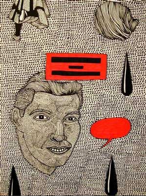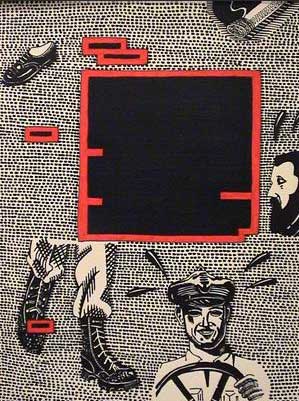 From Renoir to Matisse 2001, ציור 25 מתוך 34 בפתיחה של "אל מול השקיעה" עמדתי המומה, מסונוורת, מול הכישרון העצום. בלעתי הכל מהר ויצאתי להירגע ולעכל בטיול לילי. ביום שלאחר מכן, לפני הראיון, הסתכלתי על הציורים שוב; במבט שני אמורים הרגשות לפנות מקום למחשבות מלומדות, שכלתניות יותר. זה לא קרה. התאמצתי לפרק את היצירות לגורמים, להסביר אותן לעצמי, אבל לא הצלחתי. ידעתי רק שמצאתי את מקומי מול העבודות האלה, המאגיות והמושכות. "מישהו פעם אמר לי, ובצדק, שהוא לא יודע אם אם אני יודע לרשום או לא. זה נכון. הרישומים לא טובים" הדימויים והטקסטים של גולדשטיין מכסים לא רק יצירות של אחרים, אלא גם את אלו שלו. בלוני מלל גדולים וגסים, הלקוחים מעולם הקומיקס, מכסים פרטים מהיצירות; הציור (והסיפור) המקוריים, ה"מלאים", מוסתרים מהצופה. "יש חלקים שהטקסט או הדימוי מוחקים", אומר גולדשטיין. "אני לא משחית ספרים שהם אחד במינו, אבל האספקט של ההריסה והמחיקה הוא אחד הדברים שמפריעים לי בעבודה שלי. יש מעט ספרים שהרגשתי בגללם רגשי אשם. למשל, ספר שלא הכרתי את הסופר שלו, והצורה שהוא היה כתוב בה נראתה כמו זכרונות של אדם פרטי. חששתי שברגע שאני משחית את זה, אני משחית משהו שלא יהיה קיים יותר, אבל המשכתי בכל זאת. הרגשתי מאוד אשם. לשמחתי גיליתי שזה של סופר מאוד ידוע. "תמיד נוח לי שהיו לספר חיים קודמים. זו נקודת מוצא. החומרים זולים, מתבלים, ולא יישארו לעולם ועד. נייר זה דבר מאוד פגוע ורגיש" "גם אנשים מנוסים", הוא ממשיך, "אם תביא להם יצירה או צילום לראות, הם תמיד ישאלו אם יש לך משהו מודפס, כאילו שזה תעודת יושר. תפשתי את זה גם כשעבדתי על ספר שהתכוונתי לפרק. הלכתי לכורך, וכשהייתי שם אנשים הביאו ספרים שההורים שלהם השאירו להם, והקשר עם האובייקט הזה היה דבר מאוד חשוב בשבילם. עם הזמן התחלתי להבין את החשיבות של האובייקטים. "כשהיו משדרים לחלל, האמריקאים היו משתמשים בטכנולוגיה חדשה כל שידור, והרוסים היו משתמשים באותה טכנולוגיה, רק משדרגים אותה כל פעם. זו תפישת העולם שלי" "העבודות שלי אינטואטיביות", גולדשטיין אומר. "כשאני מתכנן אותן מראש הן יוצאות קטסטרופה. העבודה שלי די מרושלת, ובעצם בנויה על חוסר וירטואוזיות. מישהו פעם אמר לי, ובצדק, שהוא לא יודע אם אם אני יודע לרשום או לא. זה נכון. הרישומים לא טובים. זה לא קו זורם. אני גם בוחר חומרים שאני לא יכול לשנות. אלו דברים שמושכים אותי. המקורות שלי הם אאוטסיידר-ארט, אמנות נאיבית, גרפיקה זולה. האמצעים והלקסיקון של הדימויים והצורות כל-כך מוגבלים, שאני מכיר את החומרים ויש משהו אוטומטי בזה. האוטומטיות נותנת לי לתפוס משהו לא מתוכנן. כשהיו משדרים לחלל, האמריקאים היו משתמשים בטכנולוגיה חדשה כל שידור, והרוסים היו משתמשים באותה טכנולוגיה, רק משדרגים אותה כל פעם. זו תפישת העולם שלי". *** היצירות של גולדשטיין מלאות הבעות פנים קשות ומודאגות. כשאנחנו מדברים על תקופות וזרמים, גולדשטיין אומר שהיום מתחילים האמנים והקהל להתפכח, לגעת בפצעים. עכשיו, הוא אומר, מסתיימת תקופה ארוכה של אמנות פוסט-מודרנית שניסתה לתת לקהל את מה שהוא ביקש, ללטף ולהרגיע ולאשר את עולם הצרכנות על-ידי שימוש בו. תקופה לא תמימה עם אמנים תמימים. תקופה עם טלוויזיה ומותגים שהרגיעו את המצפון, וכדורים שהרגיעו את הדיכאון.