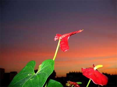 פרח על שקיעה.