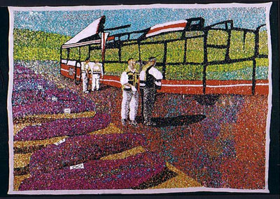 "קו 32א'" - פאייטים על בד 3x2 בעבודה "קו 32 א'´ השתמשה מרב בצילום שהתפרסם בעיתונות לאחר פיגוע של קו זה, בו נראה אוטובוס מרוטש כשלצידו שורה של גופות המכוסות בניילון שחור ואנשי זק"א בפעולה. את הצילום היא תרגמה לעבודה גדולת מימדים (2/3מ') בטכניקה של ריקמת אלפי פייטים צבעוניים לבד. הטכניקה יצרה תיאור אימפרסיוניסטי מרהיב של מציאות קשה וכואבת שמתגלה רק לאחר מבט נוסף והתמקדות בפרטים הקטנים. לשם ביצוע עבודות אלו דרוש ריכוז ושקט נפשי. העבודה הסיזיפית העוסקת בפעולה חוזרת ונשנית של חיבור פרטים מזעריים אחד לשני, חושפת בסופה תמונה שלמה של מציאות מדממת. גילוי זה מחדד את תחושותינו לגבי ההתרגלות הכפויה שלנו למצבים בלתי אפשריים ולאבסורד שבשגרה. בעבודה "המתאבדות למתאבדים" שהוצגה בגלריה "זמן לאמנות" יצרה מרב "ויטראז'' קלאסי על חלון זכוכית בהשראת אמן האר-נבו אלפונס מוחה. העבודה, שנקראה על משקל "הטובים לטייס והטובות לטייסים", מעלה את הרעיון של שימוש בנשים מפתות לצרכי תעמולה המשרתת אינטרסים לאומיים, ביטחוניים וכד'.