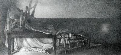 אחד הדברים היפים ביותר בחריגה זו אל עבר הפנטזיה, נובע מן העובדה שהיא נעשית דווקא באמצעות התבוננות חיה. הרישומים, שכל קווקוו, כל אובייקט וכל צל המופיע בהם מביע כמיהה למקום אחר ולמסורת אחרת, נוצרים בישיבה מול טבע דומם המוצב בחדר קטן בשכונת קריית יובל בירושלים, וכמו מבקשים לפרוץ – הן באמצעות עבודת התבוננות ממושכת והן באמצעות הדמיון – גבולות היסטוריים וגיאוגרפיים.