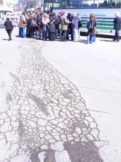 הכנס הסתיים יום לפני פורים. לקראת הערב הוטל סגר מלא על השטחים. מאתיים מטר הפרידו בינינו לבין ירושלים החוקית. מחסום קלנדיה נסגר, וסביר להניח שניסיון שלנו לצאת משם היה מוביל לעיכוב משטרתי. שני מיניבוסים מזרח-ירושלמים נושאי לוחית זיהוי צהובה לקחו אותנו בדרך חתחתים שארכה כשעה וחצי. במקום לנסוע שלוש דקות דרומה, נסענו לכיוון צפון, חצינו את רמאללה, אלבירה וביר-זית, פנינו מזרחה וחזרנו דרומה עד א-ראם שבצפון ירושלים בכביש העוקף המחבר בין ההתנחלויות עופרה, פסגות וכוכב-יעקב. בכל הדרך הארוכה הזו, שנמשכה שעה וחצי, לא נראו מחסומים וחיילים כלל. קשה להוציא פיגוע.
