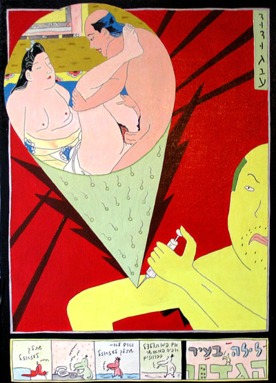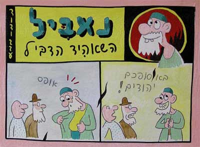 במרתפים של גבע נרקמת עכשיו מהפכת הקומיקס. הוא מראה לי קומיקס חדש שלו על A4 מקופל לשניים, "פטמות לוהטות בציריך". זו דרמת מתח מקורית בעקבות ספרו המהולל של פיודור דוסטוייבסקי. "החטא ועונשו", מהדורת הכיס. גבע קרוע על דוסטוייבסקי. הברווז ג'ו דספרדו רוצה להיענות להפצרותיה של אינגריד האקורדיוניסטית, אך חושש להסתבך עם אהובתו השיננית הבלתי מושגת. שלא במפתיע, הוא נופל למלכודת של זאב אכזר. המיני-רומן המקופל הזה אמור להיות יריית הפתיחה של המהפכה. אם היינו חיים במדינה מתוקנת, היתה צריכה ההפיכה להיות דווקא נגד גבע, הזקן ששולט בזירת הקומיקס, אבל החתרן הבלתי נלאה הזה הוא בלתי הפיך במפגיע, ויהיה הראשון שימרח את עצמו בזפת. הנוצות כבר בילט-אין. אני חושד בו שהוא מסתפח לציירי קומיקס צעירים כדי למוטט אותם, אבל אני נוטה לחשוב ככה על כל מי שנחמד אלי.