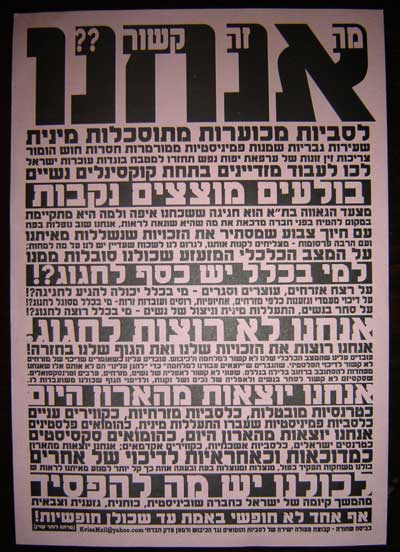לא מזמן פר?ידה, השכנה המבוגרת מלמטה, שאלה אותי בחדר המדרגות: "מה זה הדגל השחור שיש לך במרפסת?". כל-כך התרגשתי שסוף-סוף מישהו מתעניין בפיסת הבד שתקועה באדנית של הרוקט מאז ההפגנה במחסום כיסופים בשבוע שבו כוחותינו קטלו עשרה ילדים שהפגינו ברפיח והפכו 1,650 בני-אדם למחוסרי בית, עד שכל מה שיצא לי מהפה זה "הדגל מסמל אנרכיזם". פרידה חייכה ופנתה אל המדרגות לפני שהספקתי לשאול אותה מה היא חושבת על המרבד בצבעי הגאווה ששוכב מחוץ לדלת ביתי, ולהציע שנשב על תה צמחים ועוגיות טבעוניות כדי לדון בנושאים החשובים שהסמלים האלה מייצגים. המלה "קוויר" התחילה כקללת רחוב הומופובית ונוכסה על-ידי הקווירים (תהליך דומה לזה שעבר על המלה "Nigger"). אם נאמץ את הסטריאוטיפ, אם נקבל את ההגדרה המסולפת של האנרכיה כאי-סדר ואת התדמית המסולפת של האנרכיסטים כפורעי חוק משוגעים ואוהבי כאוס, אפשר לדבר על פירוק זהויות במסגרת פירוק המסגרות. מלחמת גרילה שמטרתה לפוצץ את חומות המגדר. אין זה מקרה שלאנרכיסט הודבקו תכונות כמו טירוף, חדוות הרס ופראות. בין תולדות השיגעון (בעידן התבונה) לתולדות המיניות (בעידן הוויקטוריאני-ליברלי) עובר חוט שתפקידו לגדר בין מי שבפנים למי שבחוץ. כפי שהראה פוקו, חריגות מינית, כמו כל חריגות, מסייעת לחברה להגדיר את עצמה. בתי-הכלא מגדירים את קהילת שומרי החוק, סוטי המין מגדירים את אוכלוסיית המהוגנים, בתי-המשוגעים מגדירים את הנורמליות. גידור המשוגעים על-ידי המדינה, הפסיכיאטרים, המדע או האינטלקטואלים מגדר למעשה את גבולות הנורמליות עצמה. זו המטרה. האמצעי הוא הסרתם של "המשוגעים" מהמרחב הציבורי והחבאתם מאחורי חומות. הדיקטטורה של תרבות ה-Body Building, למשל, זו שכובשת את הקהילות ההומואיות ברחבי העולם המערבי, היא דוגמה למשטור שמבצעת קבוצה שחוותה את דיכוי המשטור. ההומואים שנאבקו להסרת הגבולות שהציבו אותם מחוץ לקונצנזוס ההטרו-סקסואלי מנסים עכשיו, על-ידי שעתוק של גבולות והגבלות, להוכיח שהם יותר גברים מגברים. בספר "Stud" ("פר הרבעה") של מריסיה איאן, המתאר את "הארכיטקטורה של הגבריות", חדר הכושר מתואר כ"מאבק דרוויניסטי שבו החלש, הרופס, הפסיבי והנשי לא שורדים". איאן מתארת את ההומופוביה של חדר הכושר: "השיח בג'ים כולל מפגשים תמציתיים ופרגמטיים של לחיצת יד או טפיחה שהמסר שלהם הוא עידוד או ביקורת, לעתים התגרות – אך ורק באשר לעבודת הגוף. האידיאל של בוני השרירים לא משאיר מקום לפנים, רק לבשר. השיח הוא הומופובי במובן זה שהוא משמר ואף יוצר פחד לגבי פנימיותו של הגוף הגברי, ומציב חיץ בין הגבולות החיצוניים של הגברים". דוגמה נוספת למשטור כזה היא התנהלותו של איציק יושע – בעבר יו"ר אגודת ההומואים, הלסביות, הבי והטרנס – לאחר בחירתה של נורה גרינברג הטרנסקסואלית לעמוד בראש האגודה. יושע הודיע על התפטרותו בשל "הייצוג המביך", והביע את חששו לגבי יכולתו של הילד ההומו מדימונה להזדהות עם הגברת גרינברג, שנולדה כזכר ביולוגי ותיפקדה כגבר רוב חייה. לי עצמי אין בעיה עם טרנסים, טען יושע, אבל עבור אותו ילד יש להציב בראש האגודה דמות שתוכל להתקבל על-ידי הקונצנזוס. לא בכדי היה זה עוזי אבן, פרופסור ששירת כאיש קבע במערכת הביטחון, שהפך לחבר-הכנסת הישראלי הראשון מחוץ לארון. גברים אשכנזים כמו יושע ואבן הוכיחו שהם יכולים להתקבל על-ידי הקונצנזוס ה"נורמלי". אך האם הם יכולים לאתגר אותו? כך או כך, מי שאיבד את שאיפותיו לאתג?ר ולשנות את החברה (כולל הוריו של הילד מדימונה) אינו שייך לתנועה מהפכנית, כי אם לאגף השמרני. ההומואיות האלטרנטיבית ממשיכה להתקיים לצד חדר הכושר, וההומואים הצנומים או השמנים ממשיכים לחיות ואפילו להזדיין. היא תמשיך להתקיים גם מבחינת יושע, שאינו שואף להוציא את הטרנסים לחלוטין מהאגודה. אבל בשני המקרים ניכרת השאיפה להסיר את החריגים מהמרחב הציבורי: את אידיאל היופי וזמן הפרסומות יאיישו הומואים שריריים בלבד, והם אלה שגם יעזו לחשוף את חזיהם על רחבת מועדון הריקודים, ואיל