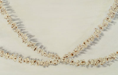 פרט מ-"ששה שמח", שמן על בד, 45X105 ס"מ בימים אלה עובדת כהן על "סדרה שמחה", כדבריה. סדרה שבמרכזה אלמנטים פשוטים וקטנים שמייצרים שמחה בבית. בסדרה זו מציגה כהן את הציור "ששה שמח", המתאר בדקדקנות מרגשת ותמימה שרשרת פופקורן (ששה, בסלנג ערבי) הזכורה לכהן מאירועים משפחתיים וחגים שבהם היו מכינים בני המשפחה יחד שרשראות פופקורן ותולים אותן ליופי על קירות הבית.