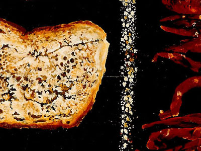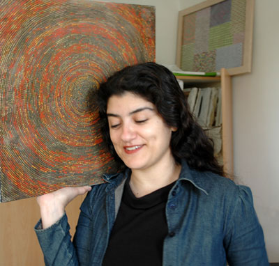 מתוך סדרת "עדשים ואורז", שמן על בד, קוטר 27 ס"מ כל אחד "ששה שמח" - אסתר כהן