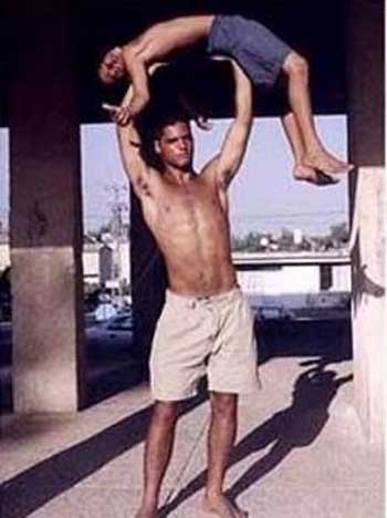 נס מציג סצנה של הנפה: גבר מניף נער.