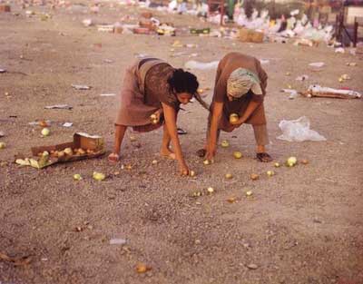 ה"שקופים" של החברה העכשווית מקבלים כאן נראו?ת השקולה לזו של דמויות העבר, שזכו לתהילת עולם. רות ונעמי, לדוגמה, מוצגות במקרא כדמויות המתפקדות בסצנה אידילית, מלקטות בשדה (לקריאה מעין זו של הדברים תרמו גם יצירות איקוניות כמו יצירתו המפורסמת של האמן הצרפתי ז'אן-פרנסואה מייה מ-1857, "המלקטות", שנס מתכתב איתה). אלא שלעומת התיאור האידילי הזה, רות ונעמי של נס מדגימות סצנה קשה, "מן החיים": נשים בשוק האוספות שאריות אוכל בסופו של יום. יעקב ועשיו שלו, בדומה, יושבים בבית תמחוי, אברהם ויצחק הם הומלסים אוספי בקבוקים, והחמור (או אולי המזבח) הוא עגלת סופרמרקט מלאה שאריות אשפה ובקבוקים שנאספו מפחי זבל.